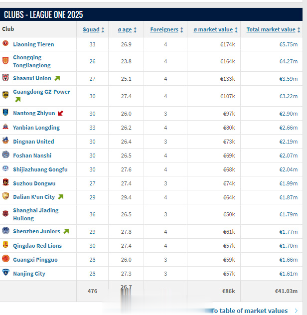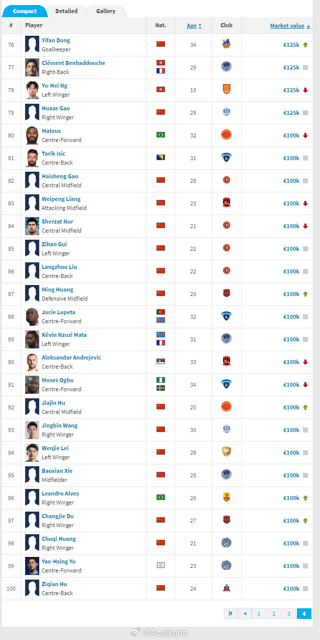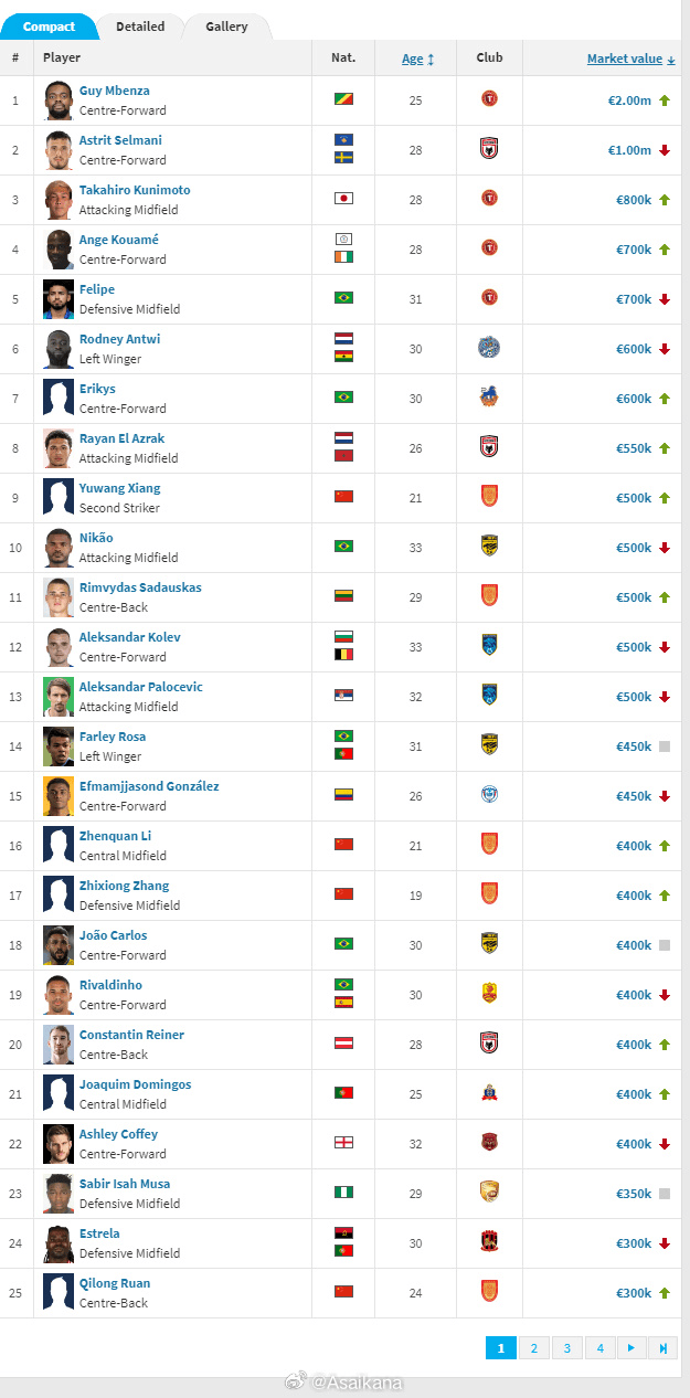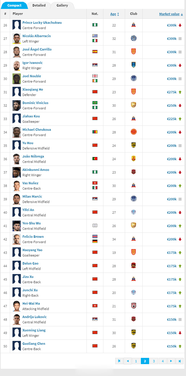 虎扑12月10日讯据《转会市场》管理员朱艺的消息,德国转会市场网(TransferMarkt.de)2025年终中甲球员身价例行更新今日已上线。