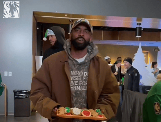 短视频内容为独行侠球员欧文和弗拉格在参加社区活动时,为孩子们分发曲奇饼干,并配文:“曲奇来啦!”