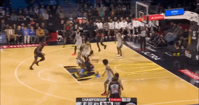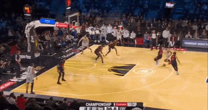 突破到内线后 发现文班亚马已经起跳 立马分球给顺下的内线