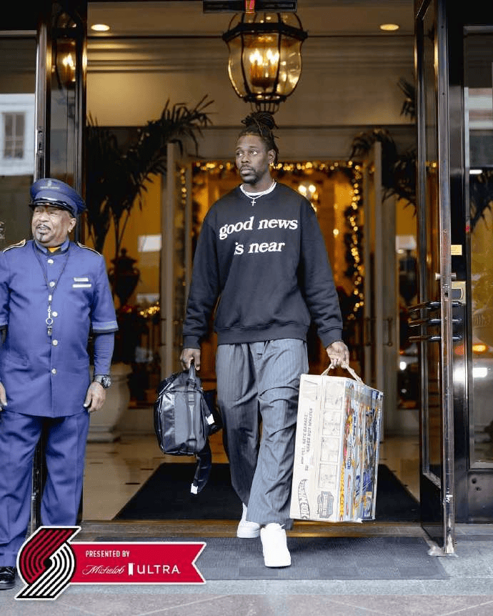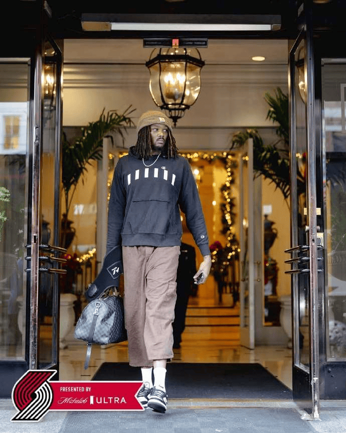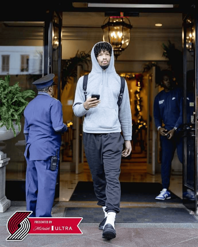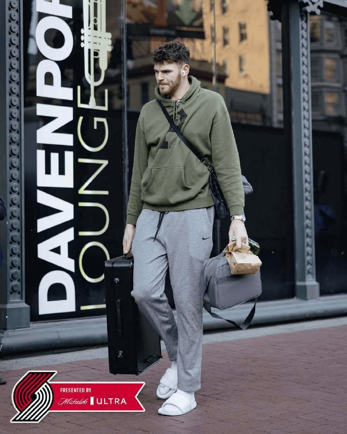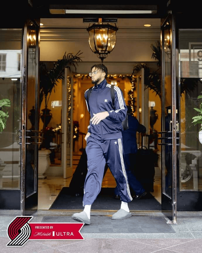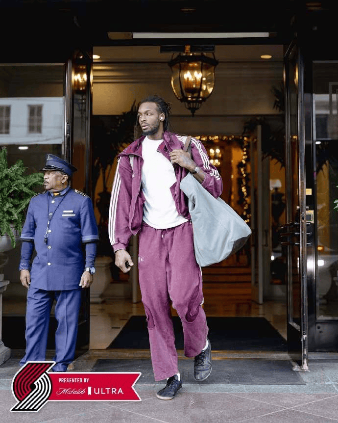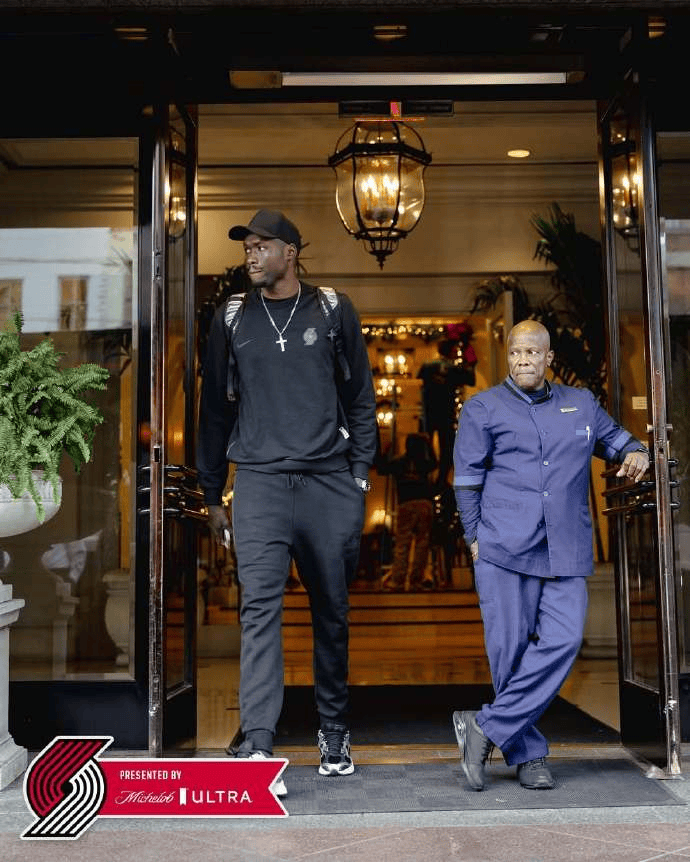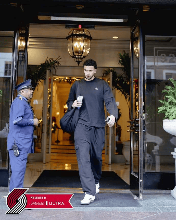 开拓者社媒分享赛前图集并配文: 滴! 打卡上班